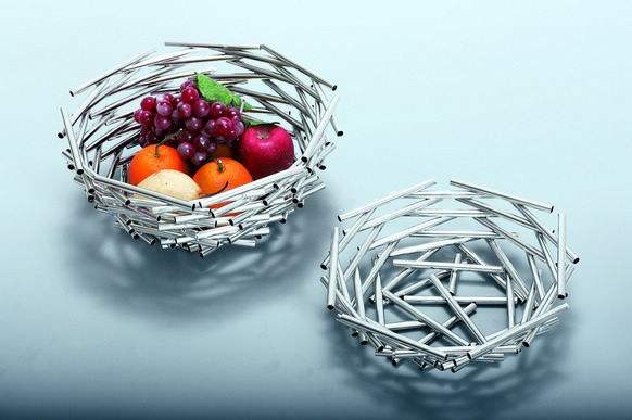 不銹鋼果盤利用金屬板塊進(jìn)行激光切割機(jī)激光切割,在用激光焊接機(jī)焊接在一起,確保更堅(jiān)固耐用。通過穿過幾何元素之間的空隙,創(chuàng)造出一種神奇的光和陰影效果。